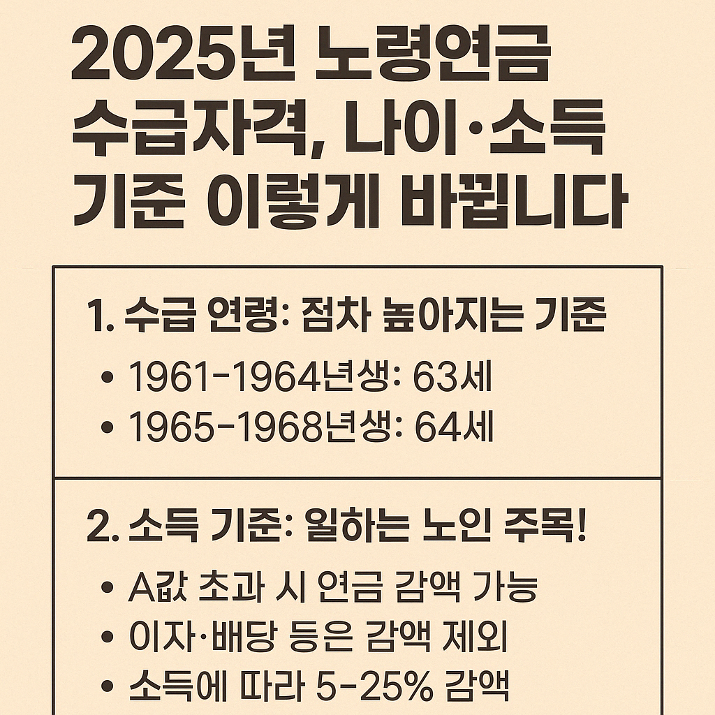 2025년 노령연금 수급자격은수급 연령 상향, 소득 기준 조정이 핵심이에요.